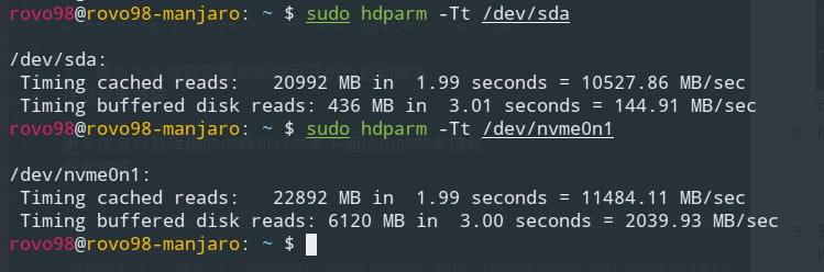 这里先给出系统迁移以及相关配置完成之后的机械硬盘和固态硬盘的简单测速对比: