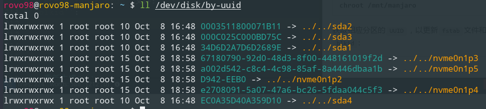 1 | mount /dev/nvme0n1p4 /mnt/manjaro |