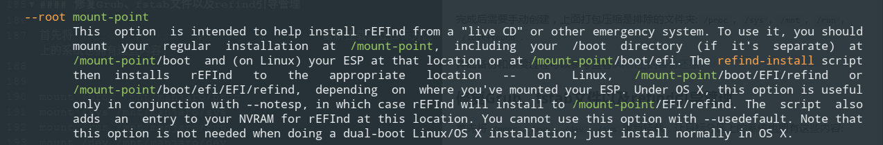 对之前的refind配置文件进行备份,保留主题文件themes及refind.conf就好了,其余的文件在执行refind-install时会自动生成.