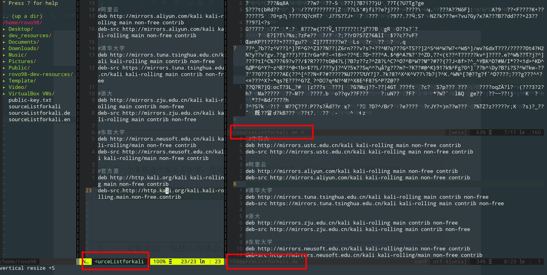加密例子: 使用alice的公钥对sourceListforKali进行加密