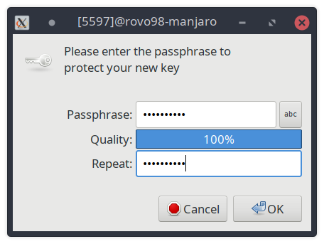 (5). 最后输入加密密码,完成密钥对的生成