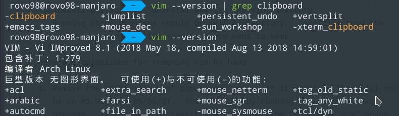 最近换了Manjaro linux系统,发现通过系统pacman -S vim安装的无图形版本vim不支持clipboard功能。