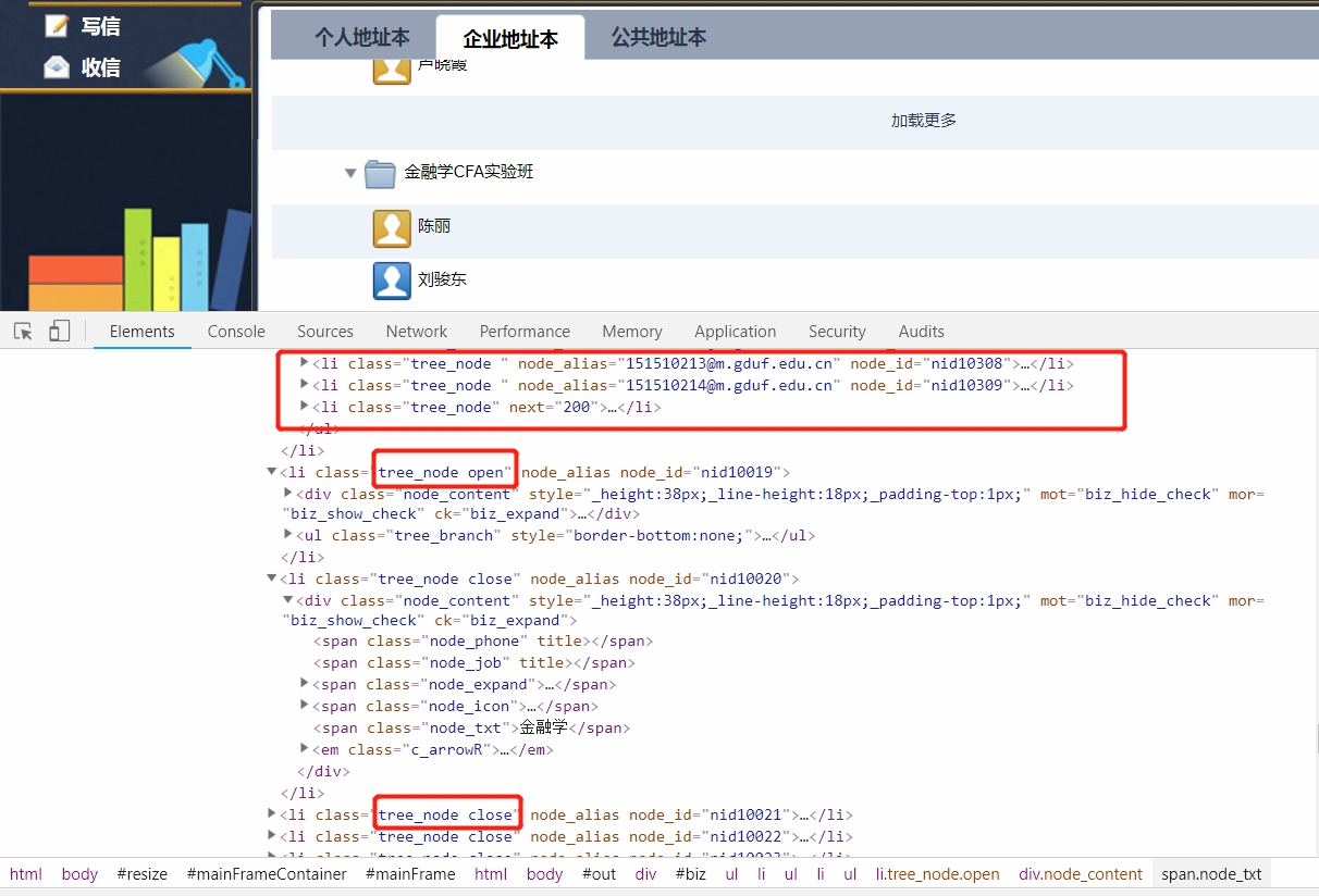 F12打开控制台,查看Elements,可以很容易发现,用户数据在目录节点没有展开的情况下,html文档中并不会包含我们需要的数据,当点击展开目录节点后,才能获取到数据。