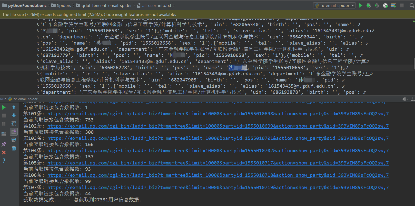 简单使用python request + re 爬取校内邮箱通信录(腾讯企业邮箱)的用户信息数据。